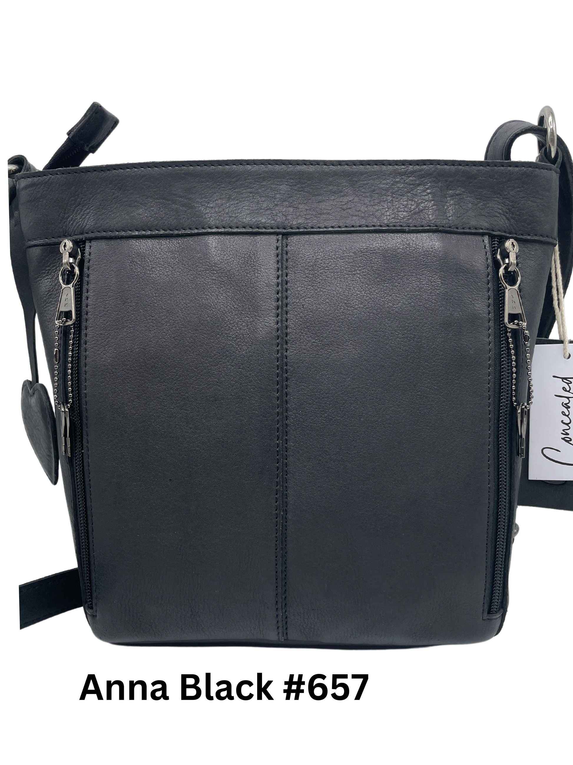 Concealed By Janko Anna Black #657 Genuine Leather Conceal and Carry Handbag