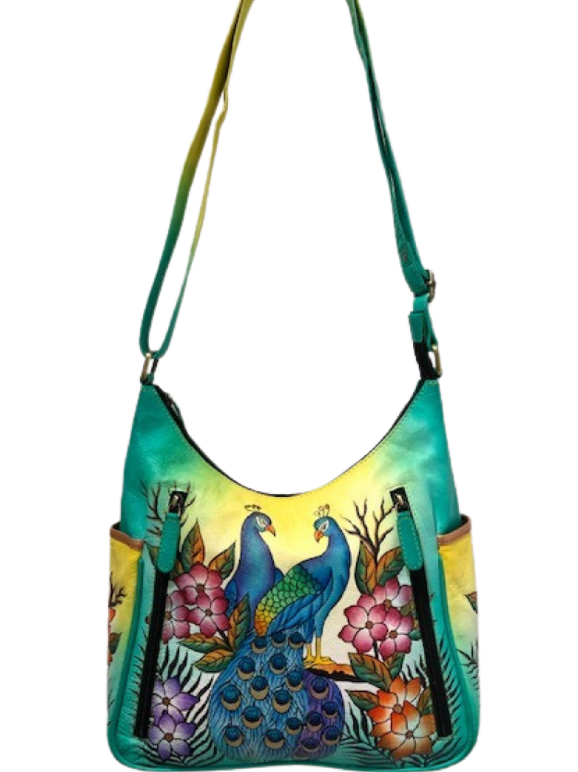 Concealed By Janko Peacock Conceal and Carry Handbag Genuine Leather Hand Painted