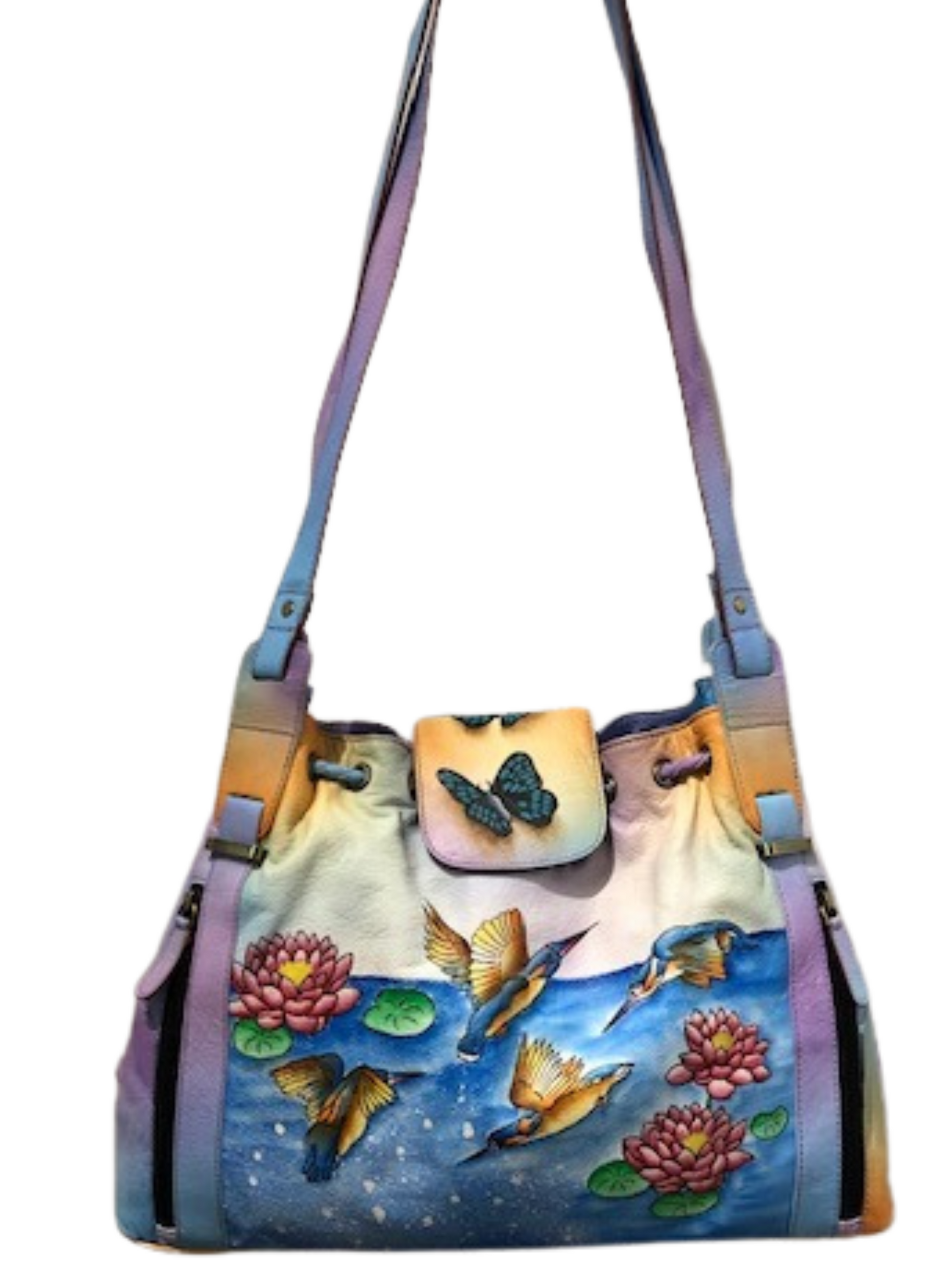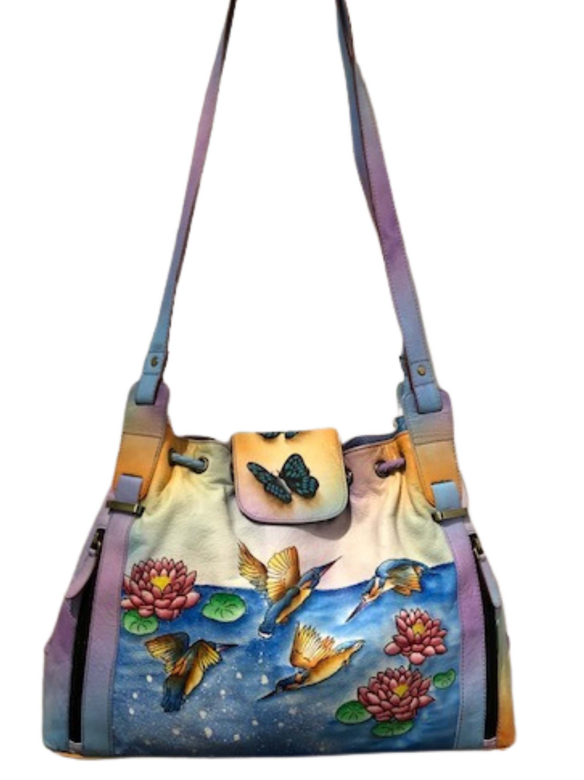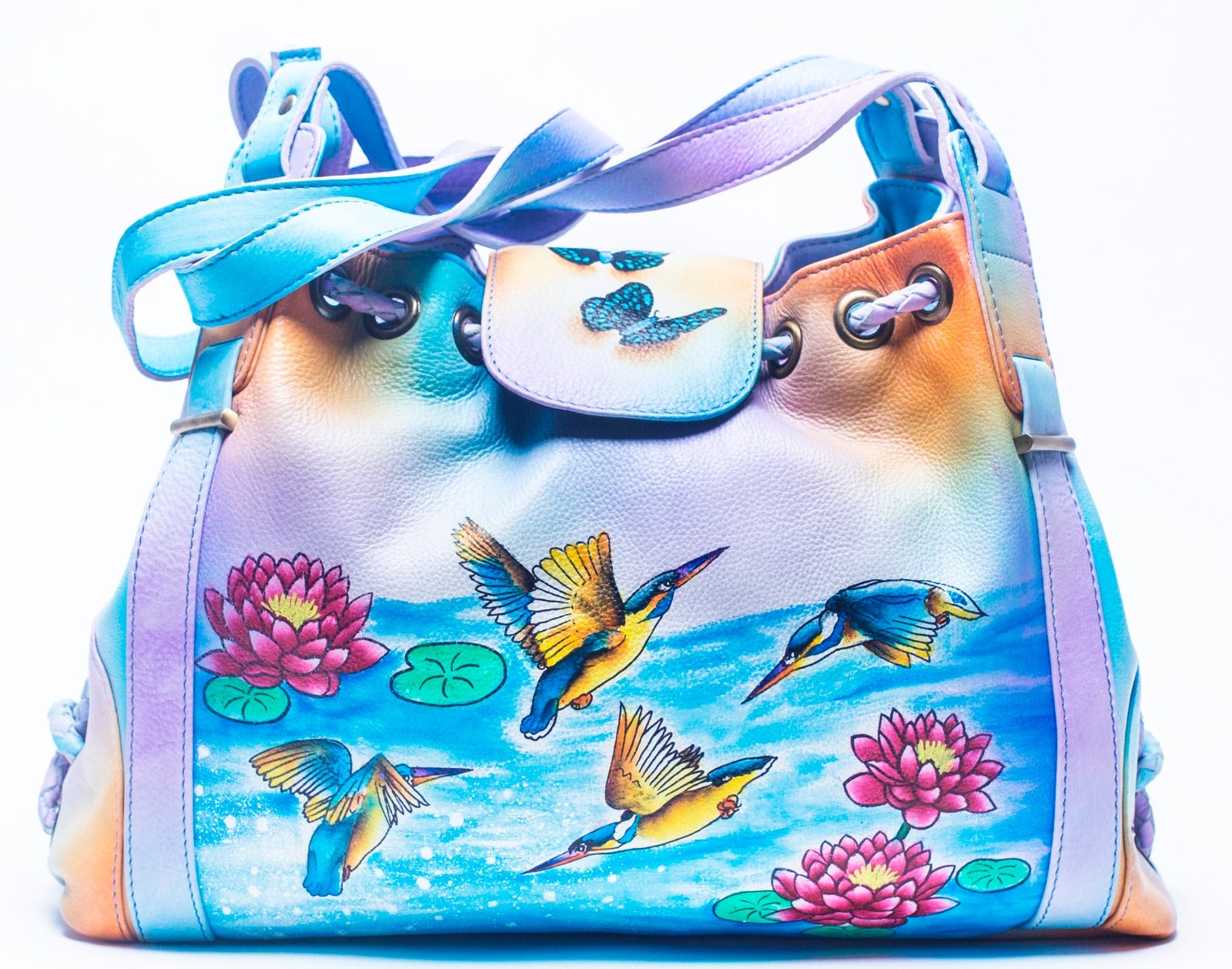 Concealed By Janko Three Birds Flying Conceal and Carry Handbag Genuine Leather Hand Painted